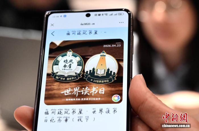 图为4月23日,晨风书屋任务职员闪现正在宇宙念书日当天出卖的晨风书屋电子留念章。中新社记者 弛斌 摄