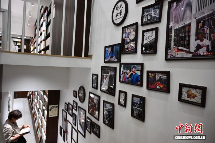 图为4月23日,晨风书屋内乱树立的相片墙,让很多老读者正在1幅幅老相片中找到影象中的念书小说。中新社记者 弛斌 摄
